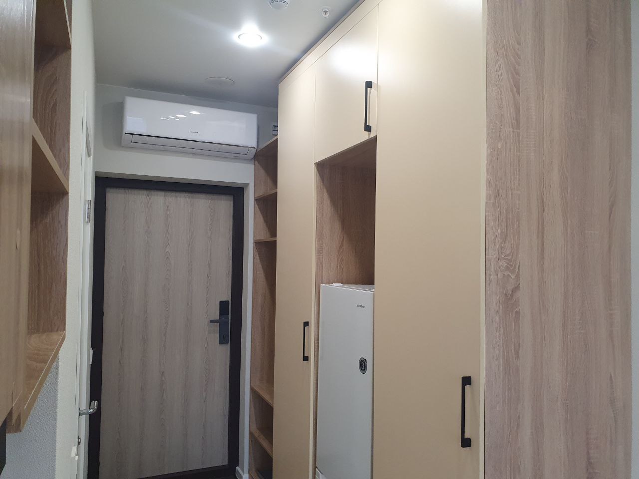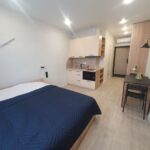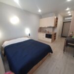 - Техника: кондиционер, холодильник, встроенная плита и микроволновка, стиральная машина, телевизор.